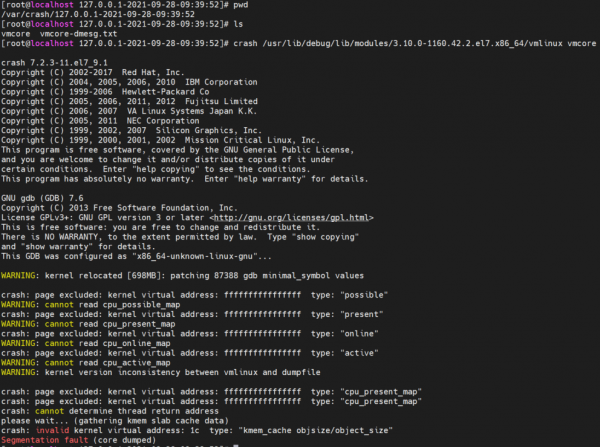 CentOS-7-x86_64-Minimal-2009 설치 후 패닉을 발생 시킨 뒤에 crash 명령어로 덤프 분석을 하려고 했는데